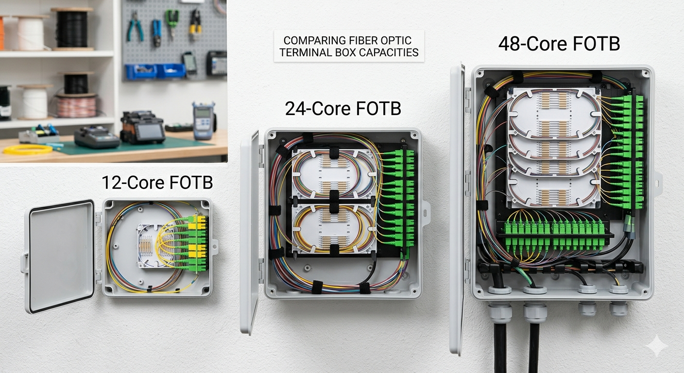 Pour déterminer la capacité idéale d'un Boîte à bornes à fibre optique (FOTB) , vous devez faire correspondre le nombre de fibres, que ce soit 12 cœurs, 24 cœurs ou 48 cœurs —à votre densité d'abonnés actifs actuelle tout en permettant un Marge de croissance de 20 à 30 % pour une expansion future. Choisir la bonne capacité évite les dépenses d’investissement initiales élevées liées au surprovisionnement et évite les goulots d’étranglement techniques dus au sous-provisionnement.
