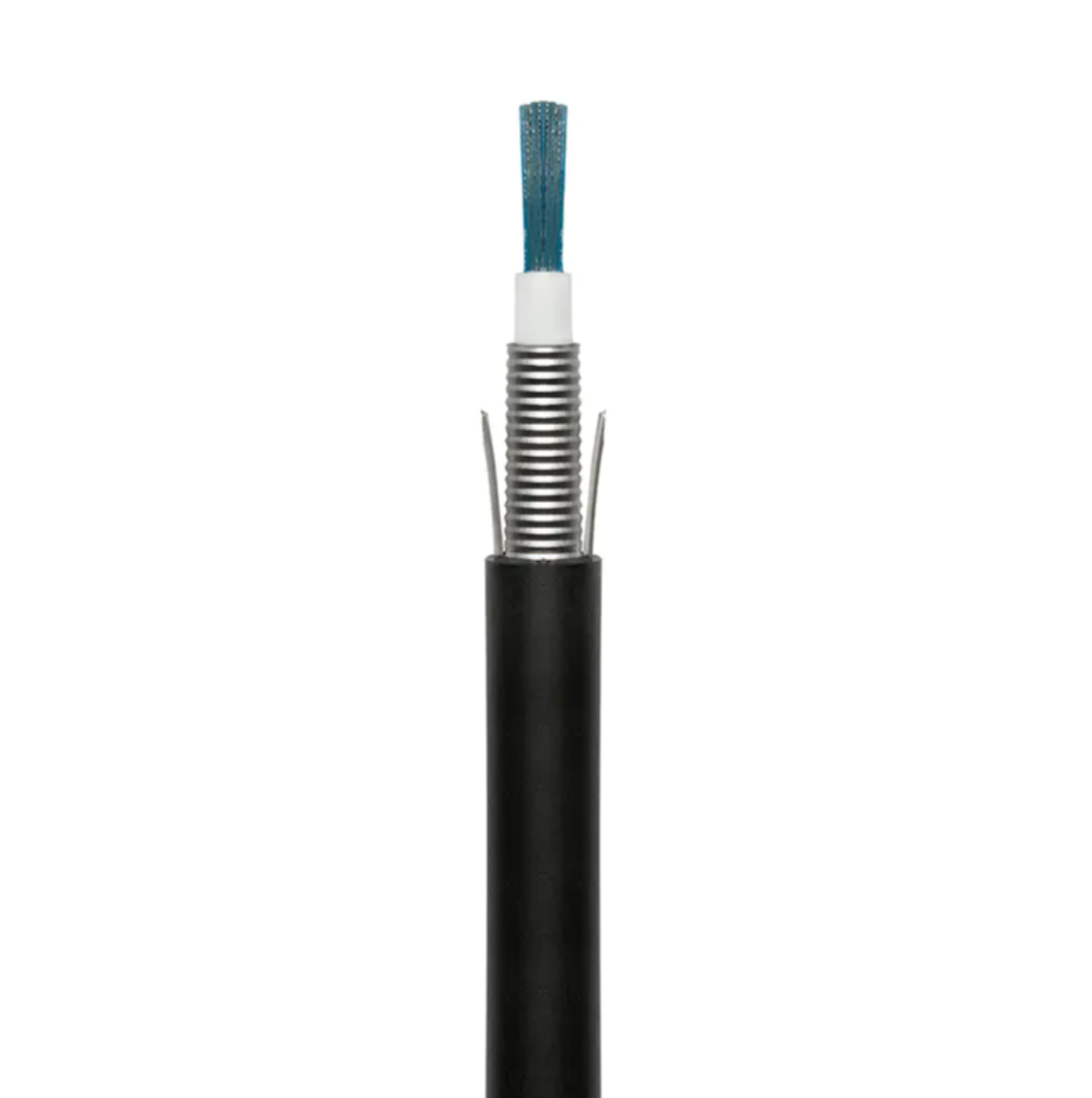 Nécessite des capacités imperméables, résistantes aux UV et aux rongeurs. Utilise habituellement un structure toronnée à tube libre rempli de gel bloquant l’eau.